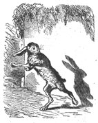 Un lièvre, apercevant l'ombre de ses oreilles,